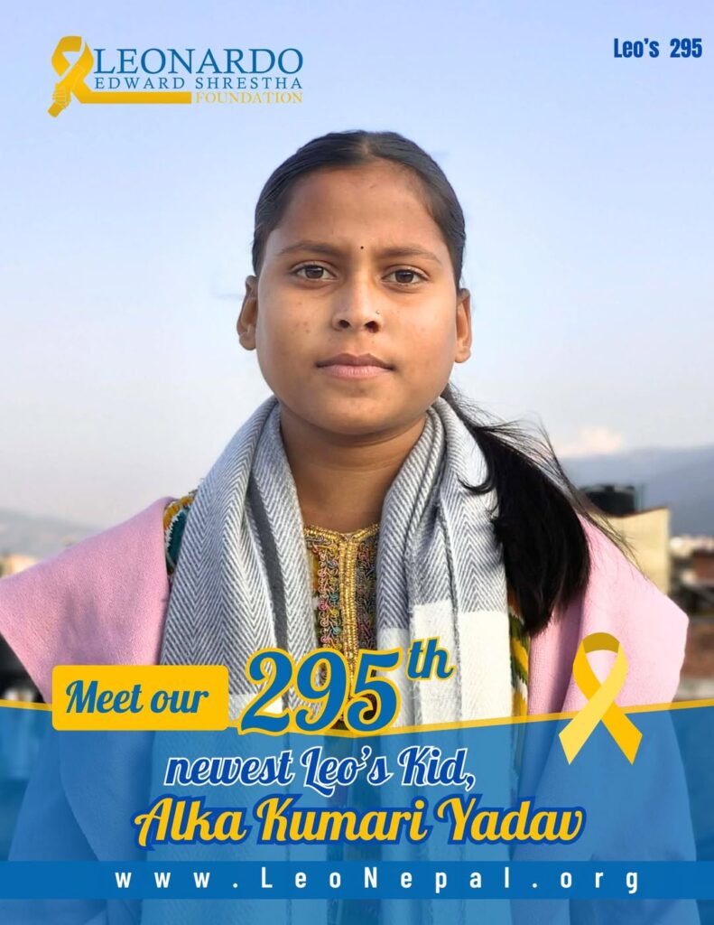 We are happy to welcome Alka Kumari Yadav, a brave 13-year-old girl from Dhanusha, Sahidnagar, to our Leo’s Kids family. Alka is currently fighting B All (Blood Cancer) and is receiving treatment at Bhaktapur Cancer Hospital.
