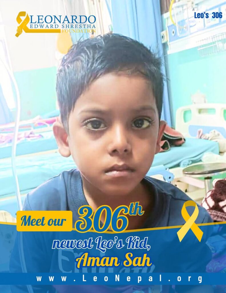 We are so happy to welcome 6-year-old Aman Sah from Ganeshman Charnath, Dhanusha, as our 306th Leo’s Kid! This brave young boy has been diagnosed with Blood Cancer and is currently receiving treatment at Bharatpur Cancer Hospital (B.P.K.M.C.H) in Chitwan.