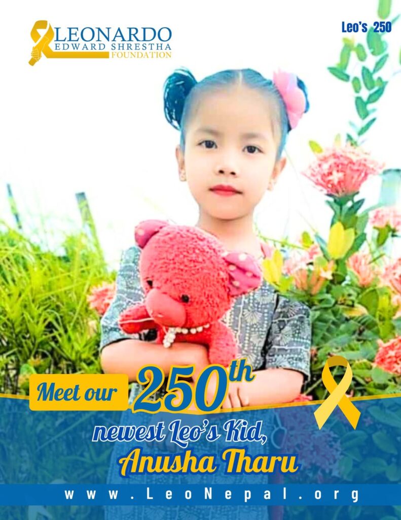 We are honored to welcome 6-year-old Anusha Tharu from Bardiya as our 250th Leo’s Kid! This brave little girl has been diagnosed with Lymphoma and is currently receiving treatment at Bharatpur Cancer Hospital.