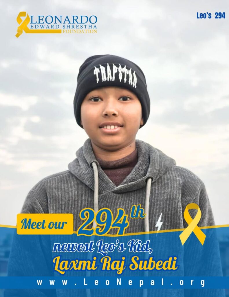 We are happy to welcome Laxmi Raj Subedi, a brave 13-year-old boy from Ramechhap Municipality-8, Dumnikharka, to our Leo’s Kids family. Laxmi Raj is currently fighting Non-Hodgkin Lymphoma (NHL) and is receiving treatment at Bhaktapur Cancer Hospital.