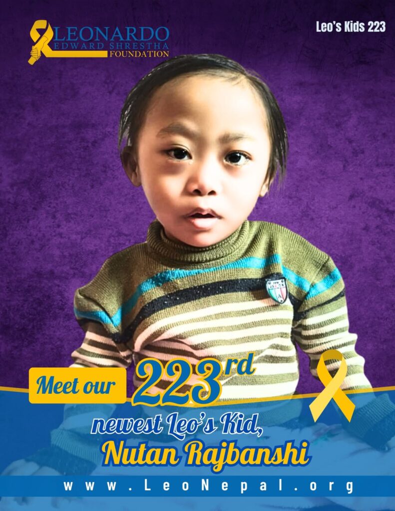 Welcome our 223rd Leo’s Kid, Nutan Rajbanshi! 👋 We are so happy to welcome two-year-old Nutan, from Jhapa, to the Leo’s Kids family. Nutan has been diagnosed with blood cancer and is currently receiving treatment at Bhaktapur Cancer Hospital. His family, including his father Lal Bahadur, a painter, and his mother Rajkumari, are by his side as he bravely faces this journey.