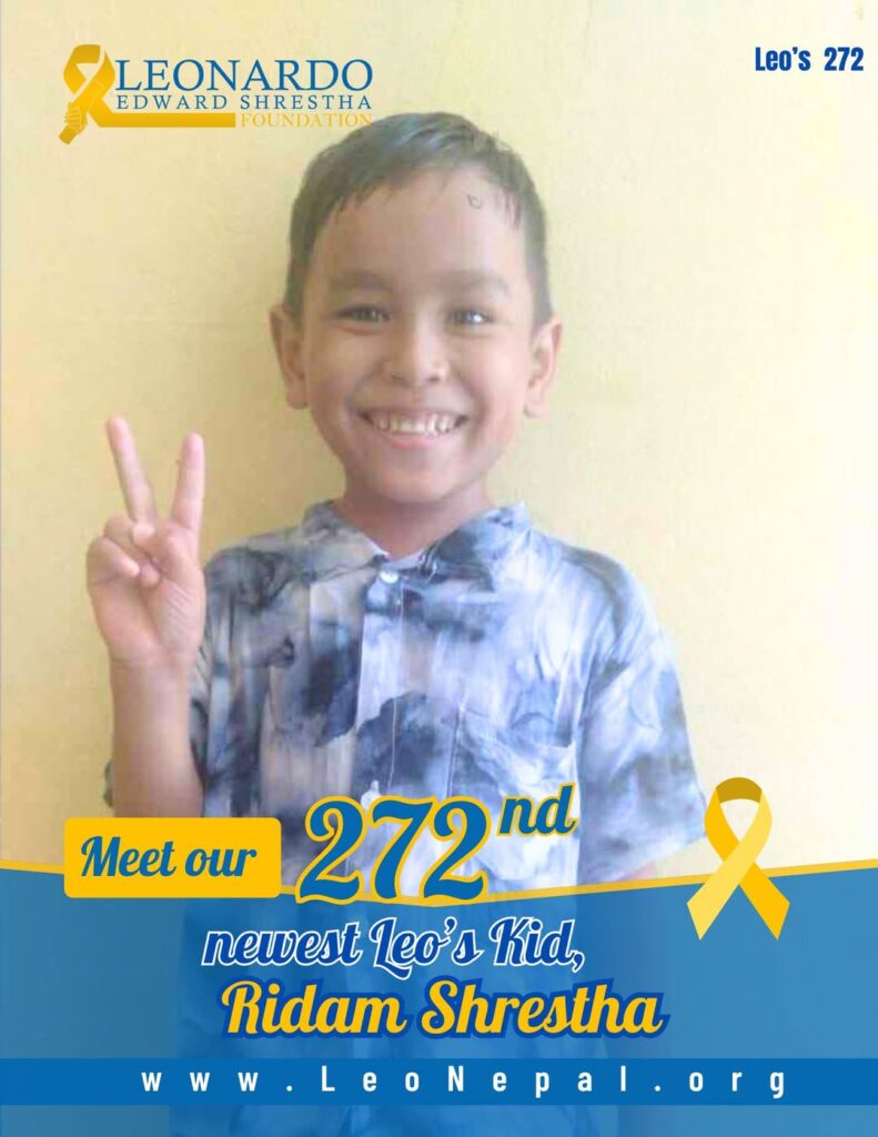 We are thrilled to welcome our 272nd Leo’s Kid, Ridam Shrestha, a brave 6-year-old boy from Paudadunga-1, Bhojpur! Ridam is currently undergoing treatment for Blood Cancer at Bharatpur Cancer Hospital.