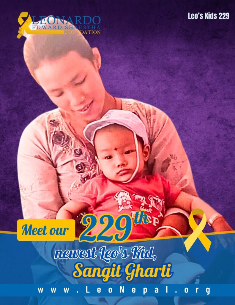 Welcome our 229th Leo’s Kid, Sangit Gharti! This brave 7-month-old baby boy from Lumbini has recently joined our family at the Leonardo Edward Shrestha Foundation. Sangit is currently undergoing treatment for kidney cancer at Patan Hospital and is staying in our K-flat.